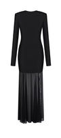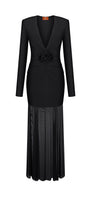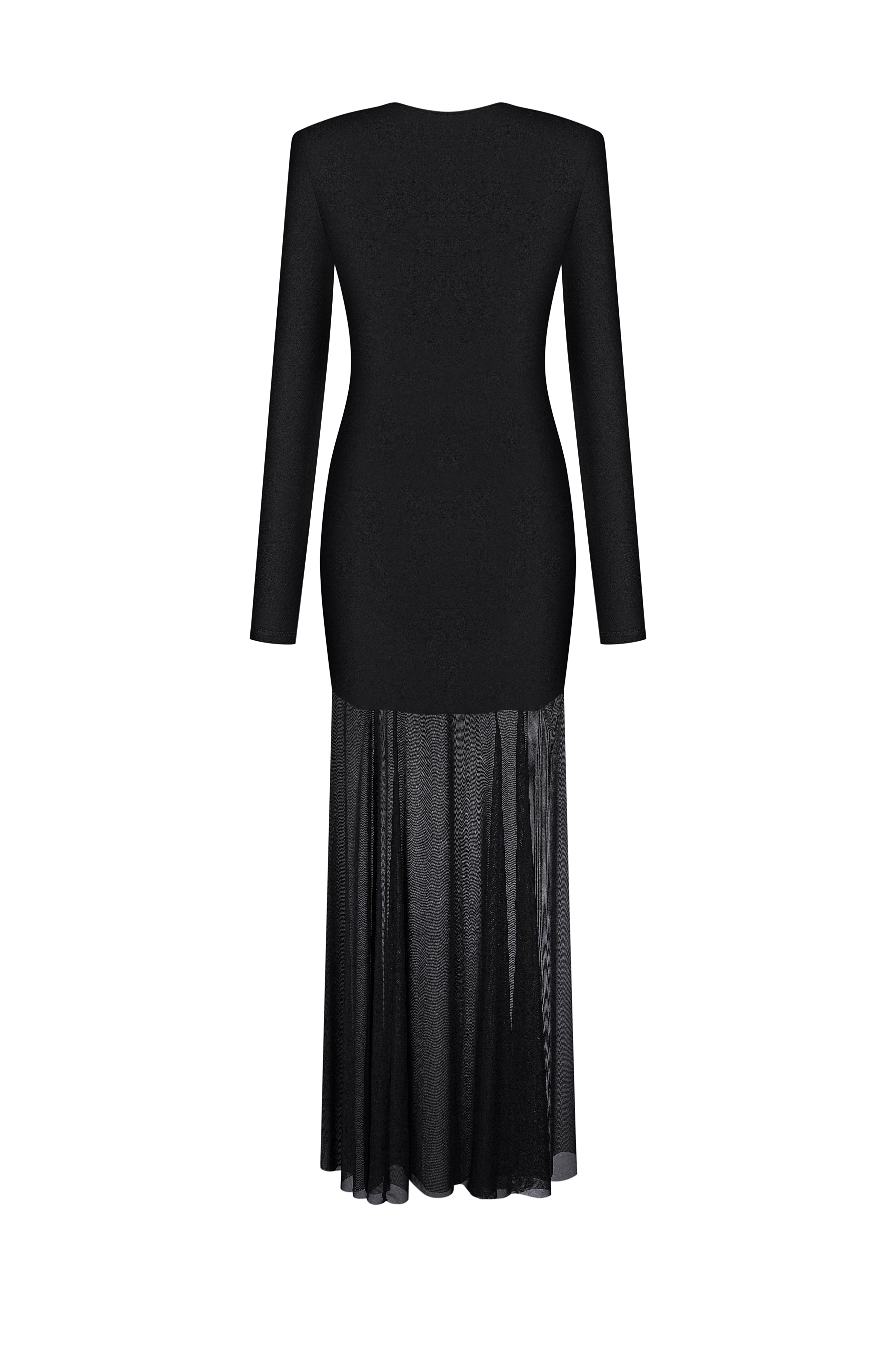 Довгі рукави огортають силует, а глибокий V-подібний виріз додає легкості та витонченості.