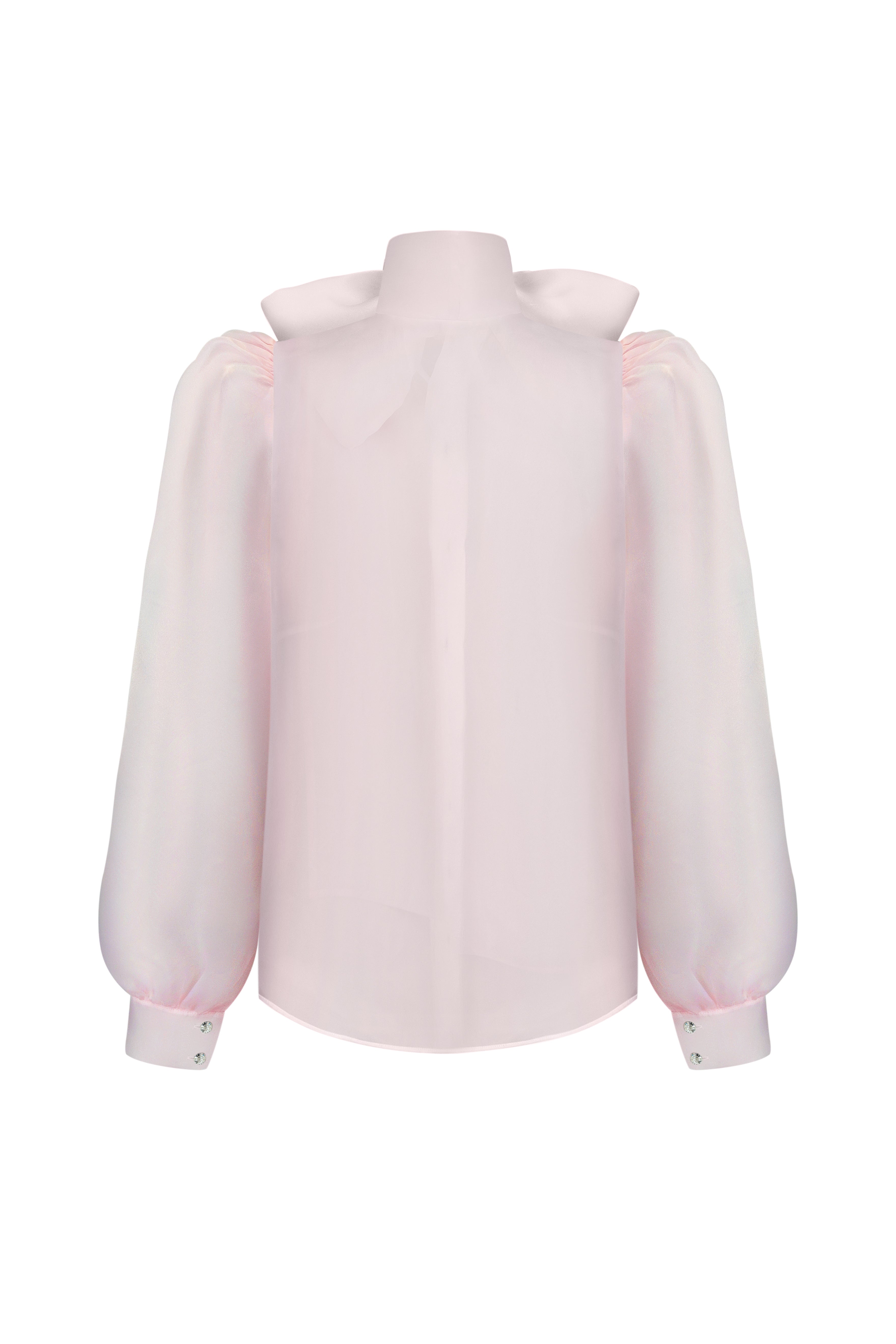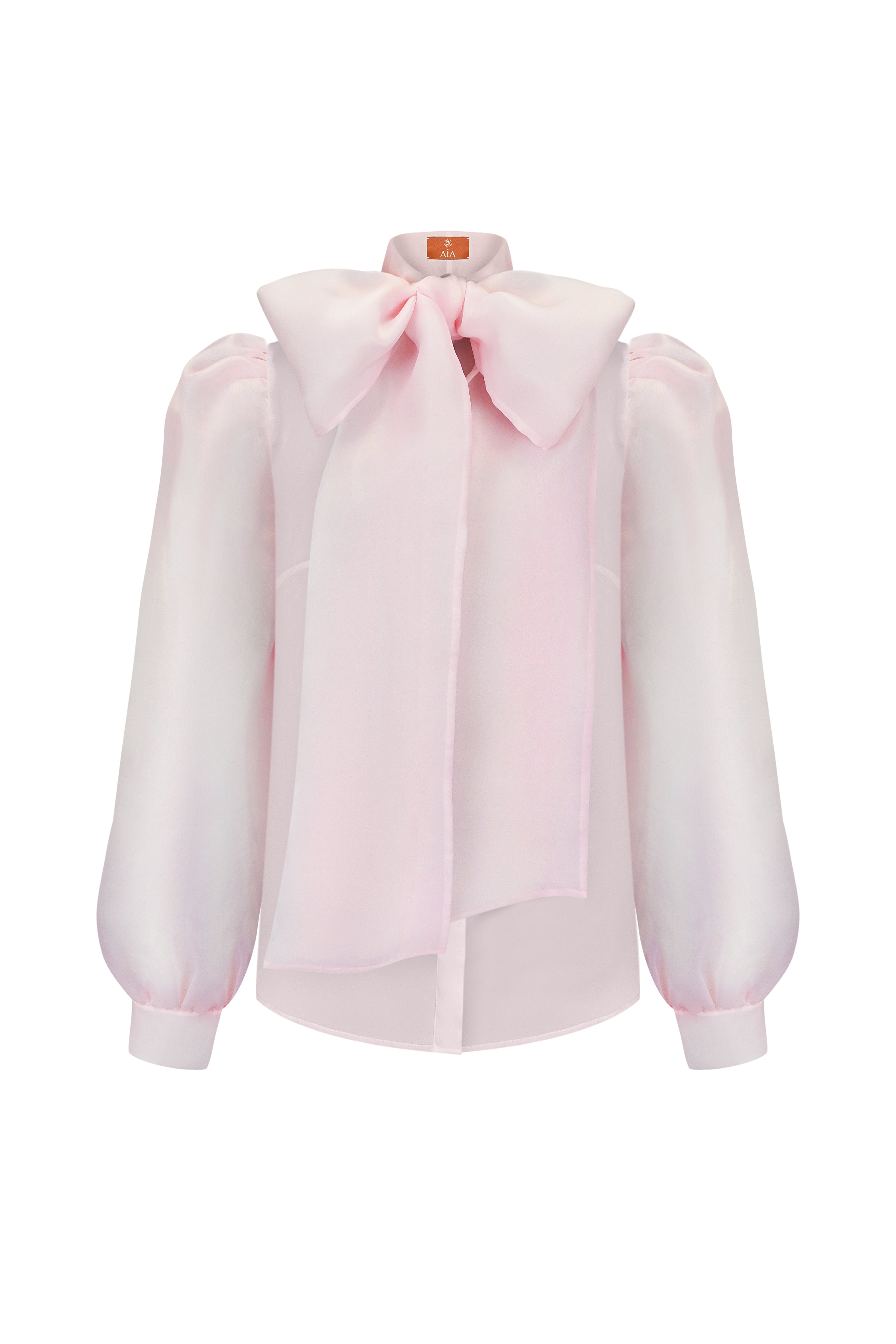 Зав’язка-бантик на комірі спадає вниз, немов легкий порив вітру.